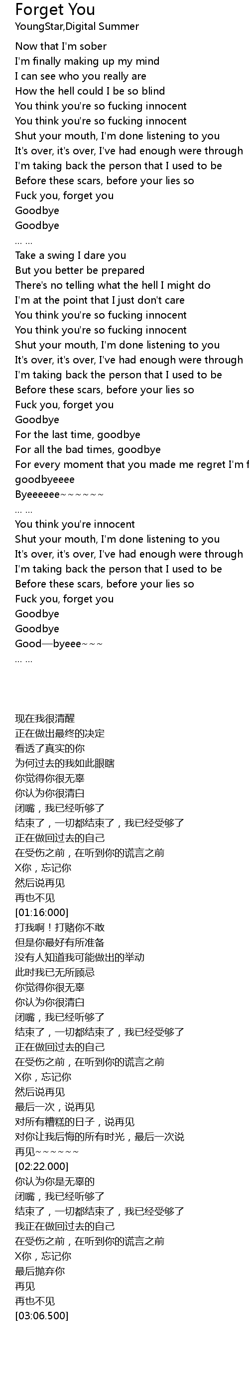 | [00:47.500] | Shut your mouth, I'm done listening to you |