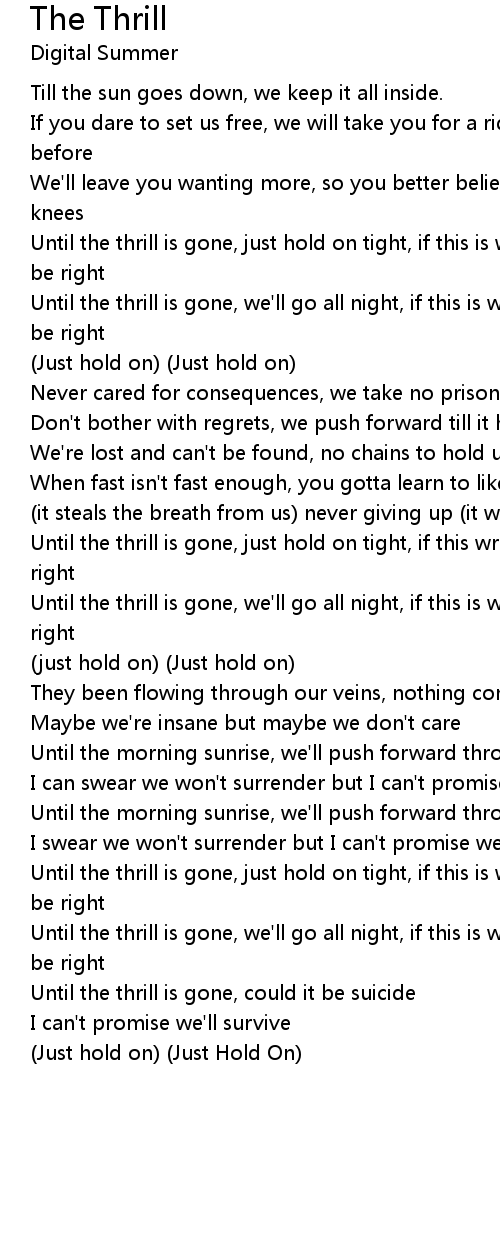 Until the thrill is gone, just hold on tight, if this wrong i don't want to be right