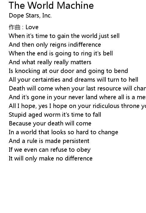 | Song | The World Machine |