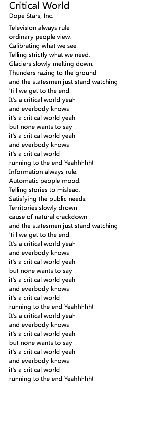 it's a critical world |