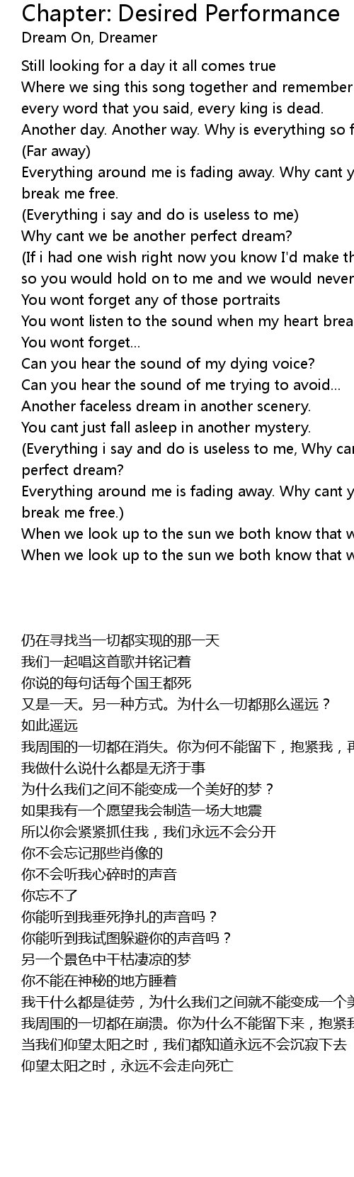 (Everything i say and do is useless to me, Why cant we be another perfect dream? |