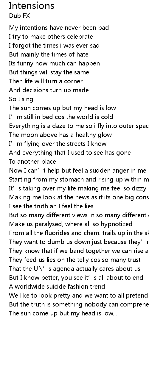 | Song | Intensions |