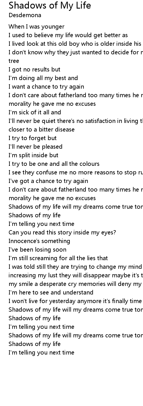 Shadows of my life will my dreams come true tonight? |