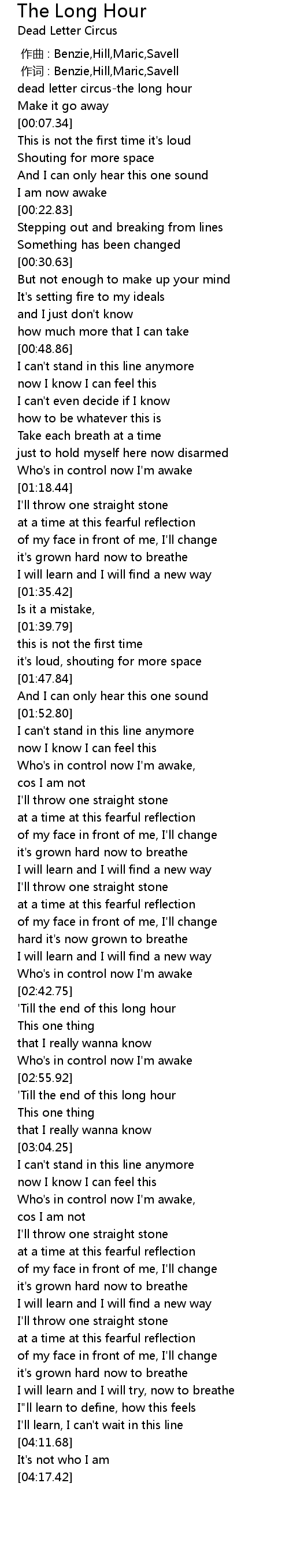 | [02:44.74] | 'Till the end of this long hour |