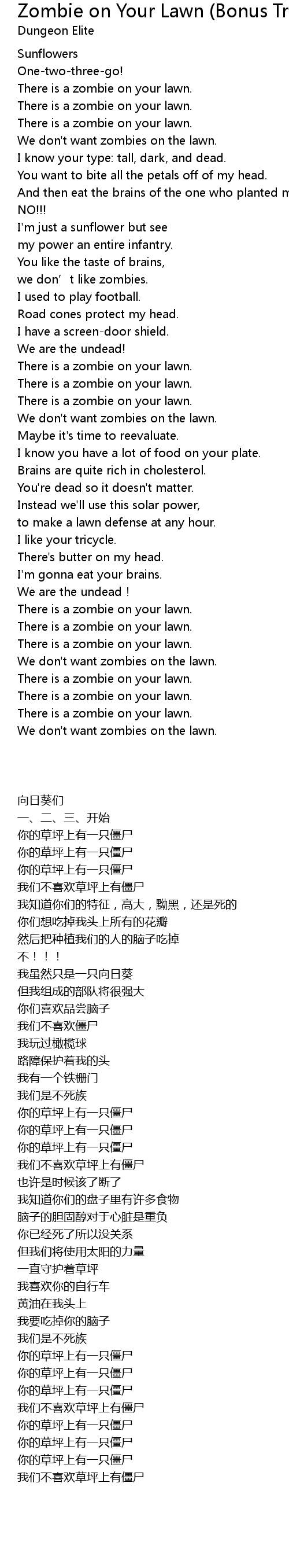 | Song | Zombie on Your Lawn (Bonus Track) |