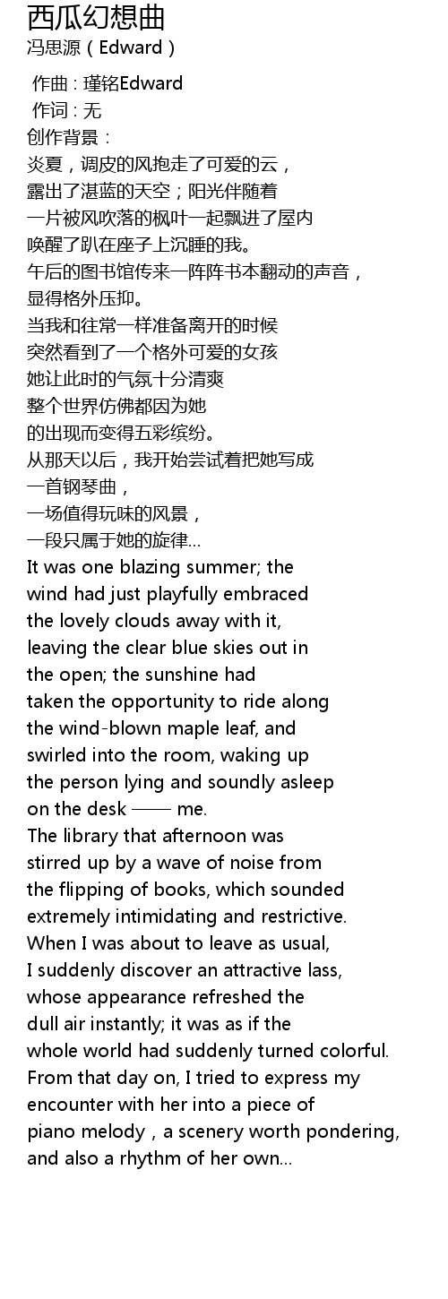 | [00:00.000] | 作曲 : 瑾铭Edward |
