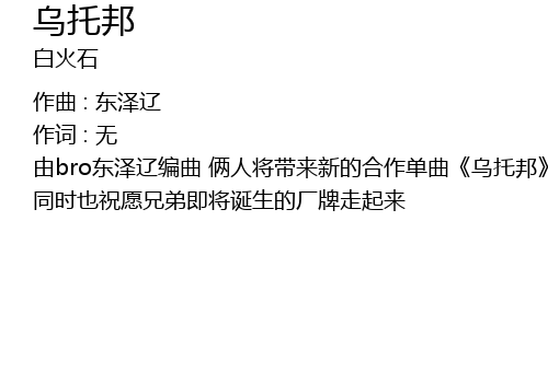 | 由bro东泽辽编曲 俩人将带来新的合作单曲《乌托邦》 | |