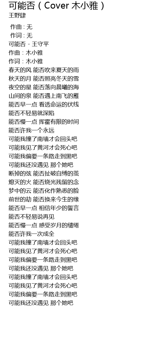 | [00:01.00] | kě néng fǒu wáng shǒu píng |