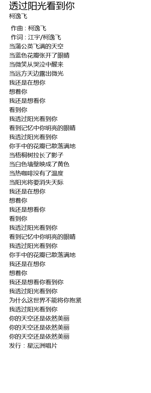 | [04:16.33] | wǒ tòu guò yáng guāng kàn dào nǐ |