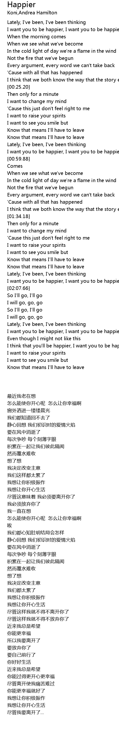 | [02:04.35] | I want you to be happier, I want you to be happier |