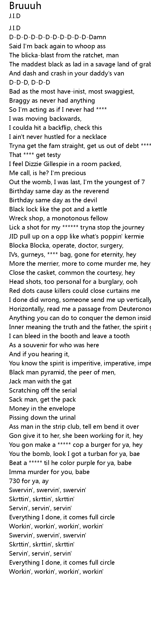 | [00:53.26] | JID pull up on a opp like what's poppin' kermie |