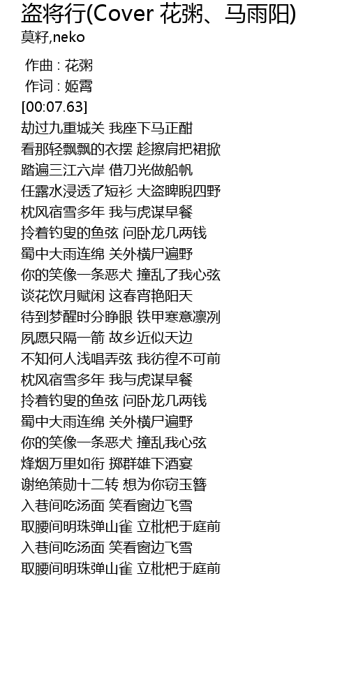 | [00:18.11] | 劫过九重城关 我座下马正酣 |