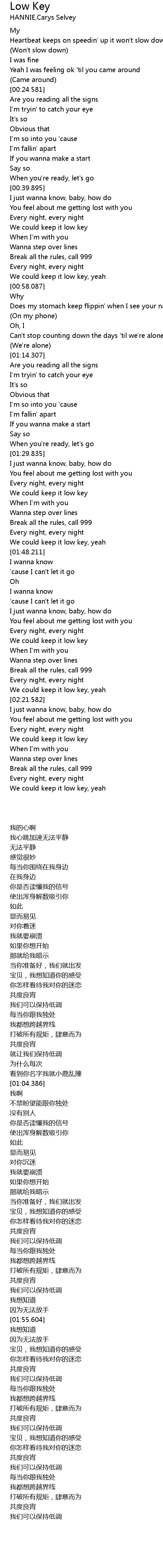 | [00:55.448] | We could keep it low key, yeah |