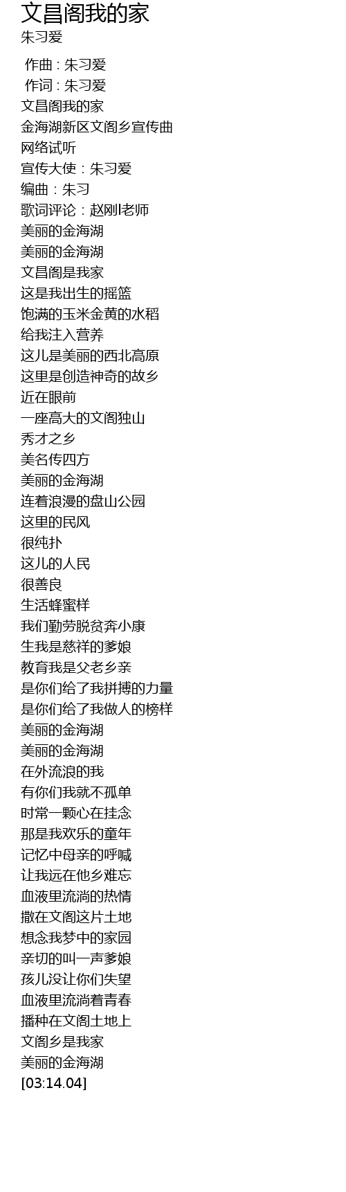 | [00:01.19] | 金海湖新区文阁乡宣传曲 |