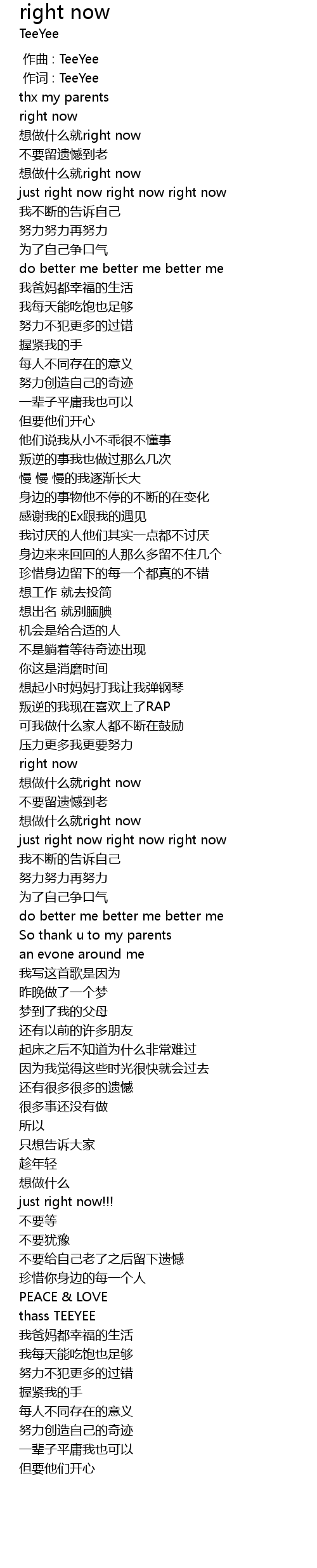 | [00:14.98] | xiǎng zuò shí mǒ jiù right now |