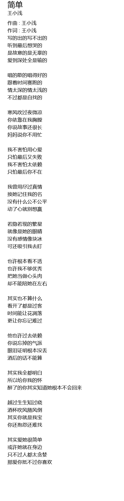 | 作词 : 王小浅 | |