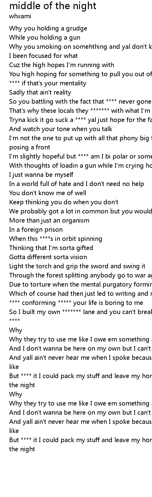 But **** it I could pack my stuff and leave my home in the middle of the night |