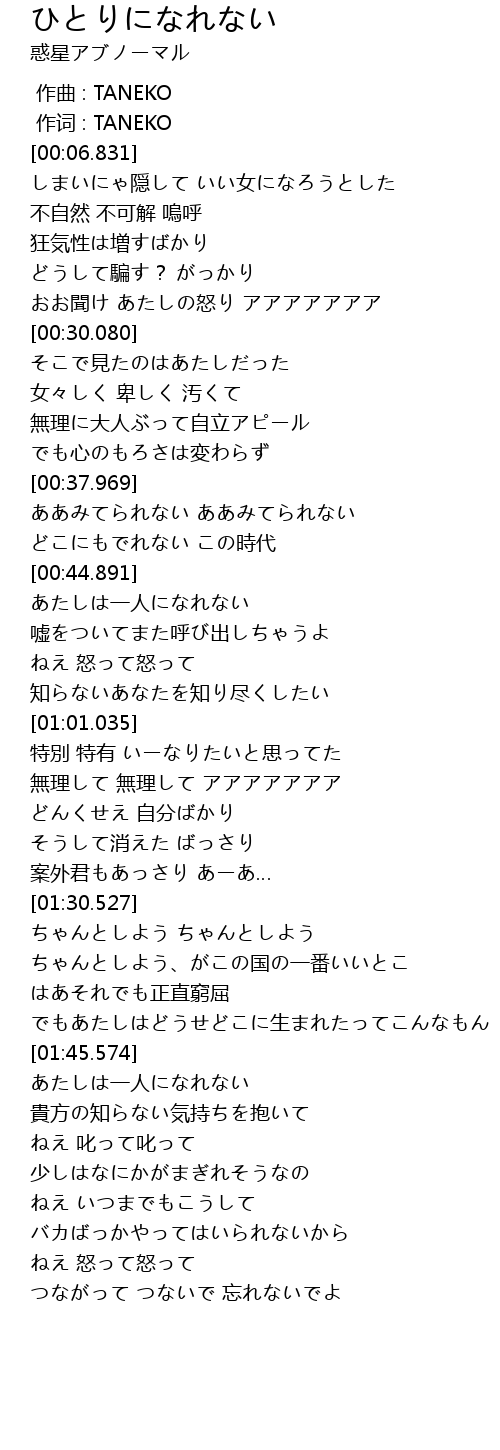 | [00:45.231] | あたしは一人になれない |