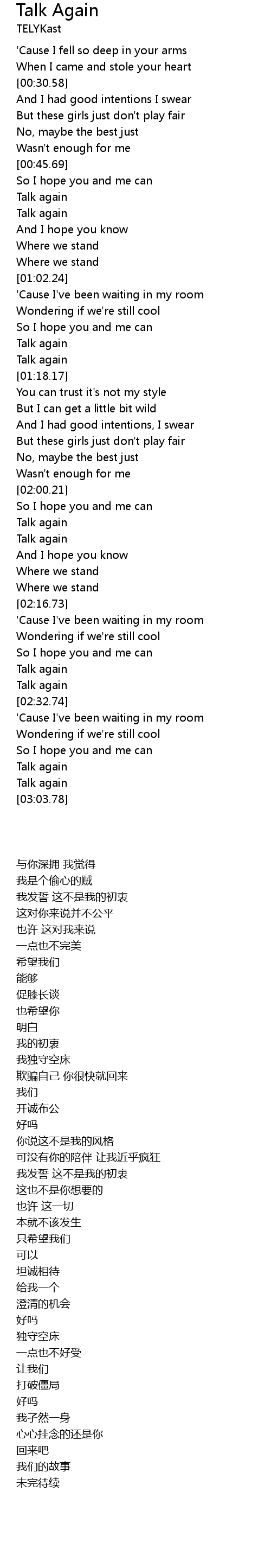 Talk again |