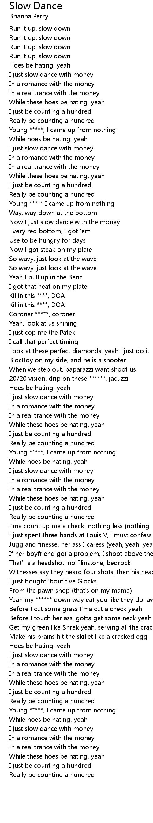 | [01:32.56] | 20/20 vision, drip on these ******, jacuzzi |