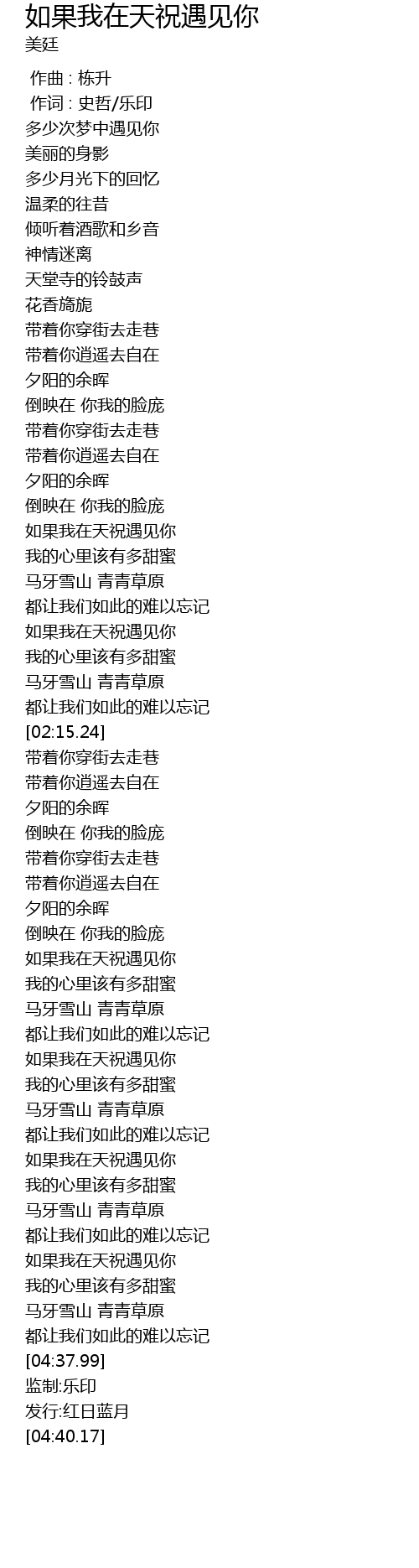 | [04:13.33] | 如果我在天祝遇见你 |