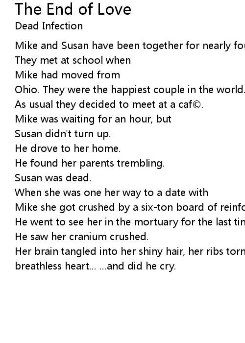 | Her brain tangled into her shiny hair, her ribs torn from torso and her breathless heart... ... and did he cry. |