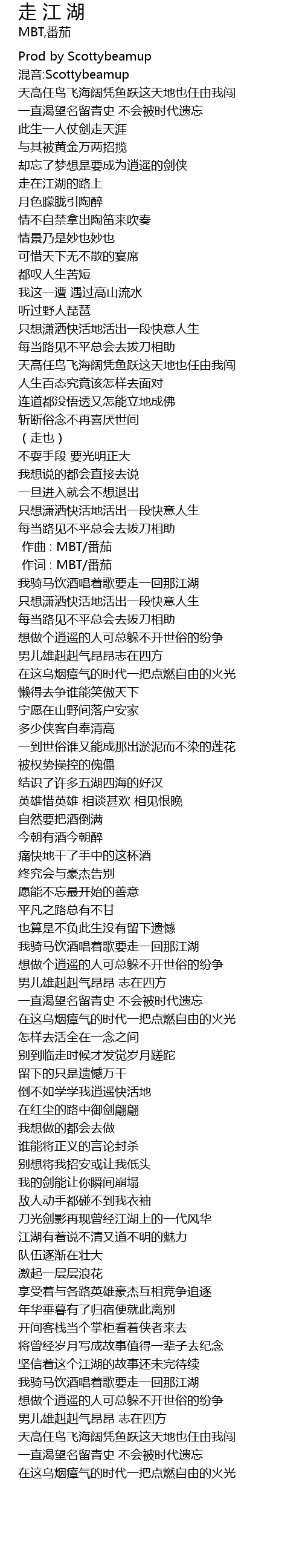 | [01:14] | zǒu zài jiāng hú de lù shàng |
