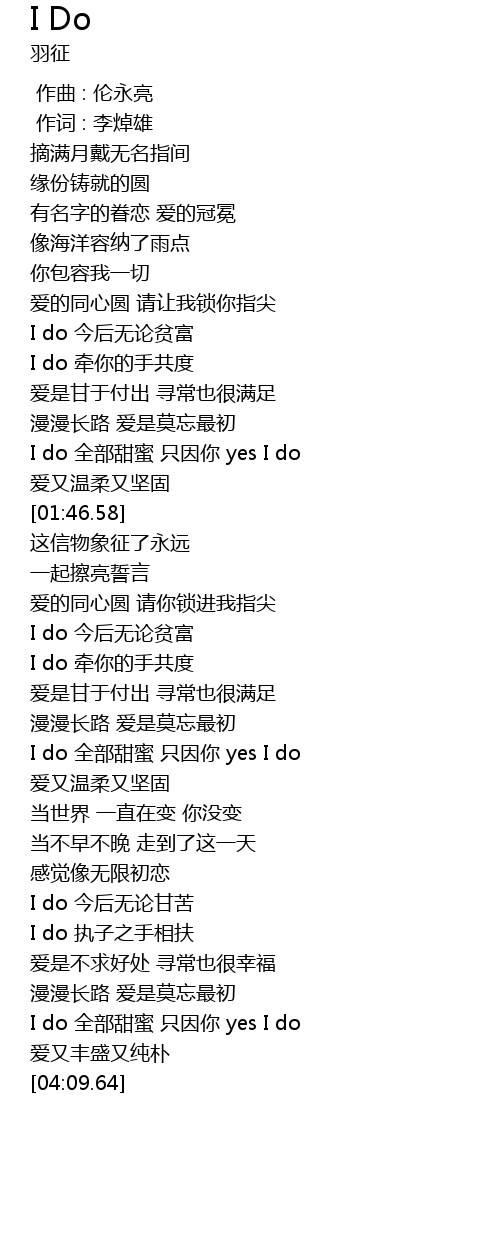 | [03:53.60] | I do 全部甜蜜 只因你 yes I do |