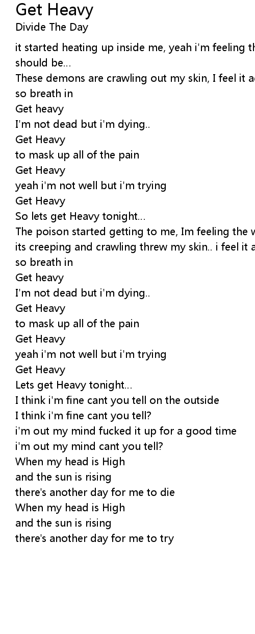 | it started heating up inside me, yeah i'm feeling the burn its hotter then it should be… | |