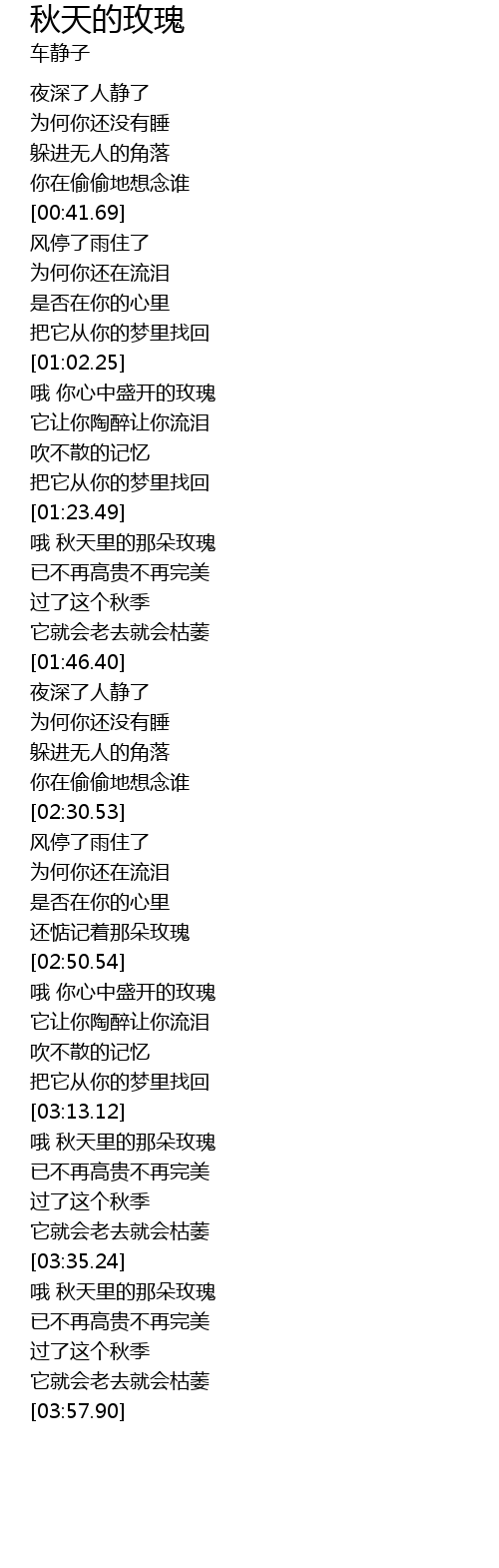 | [03:13.80] | 哦 秋天里的那朵玫瑰 |