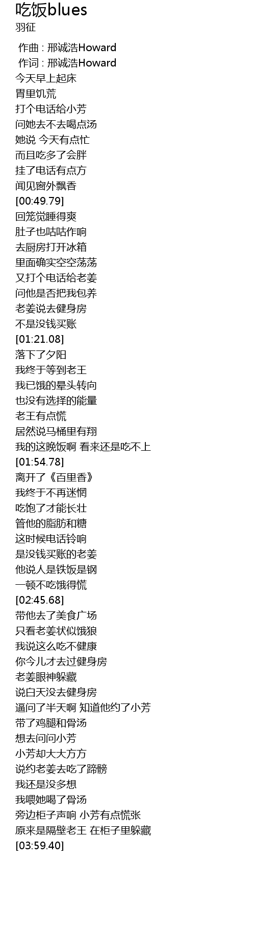 | [03:31.51] | 说约老姜去吃了蹄髈 |