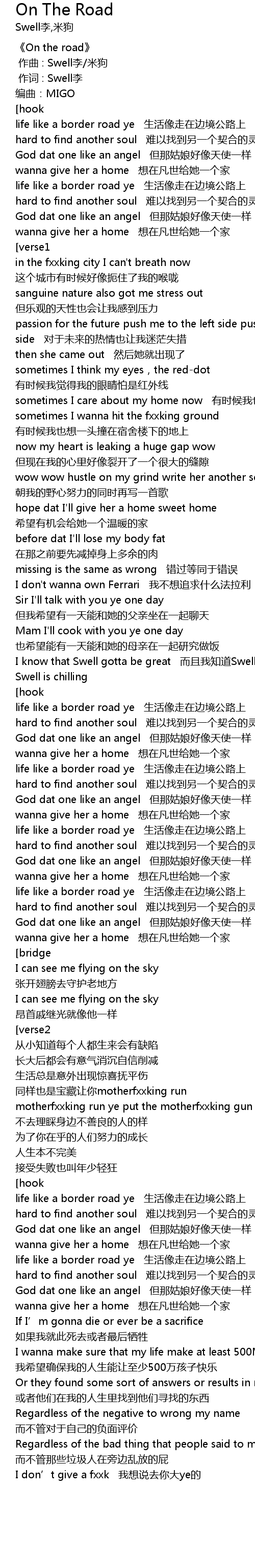 | [01:03:00] | I know that Swell gotta be great ér qiě wǒ zhī dào Swell yí dìng huì niú X |