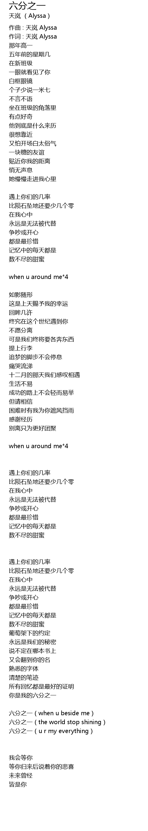 | nǐ shì wǒ de liù fēn zhī yī | |