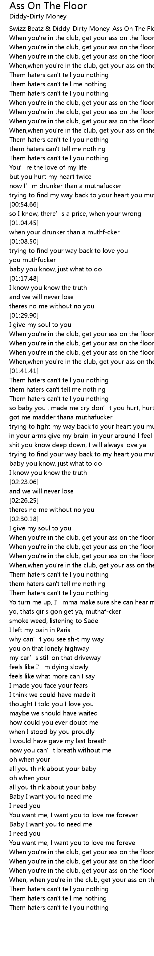 | [00:20.24] | When you're in the club, get your ass on the floor |