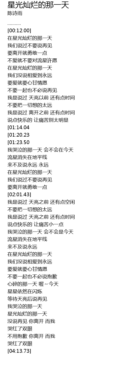 | [03:12.89] | zai xing guang can lan de na yi tian |