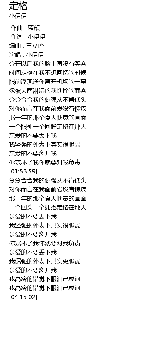 | [01:38.08] | qīn ài de bú yào lí kāi wǒ |