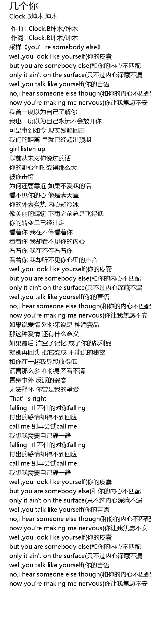 | [00:03.511] | but you are somebody else(和你的内心不匹配 |