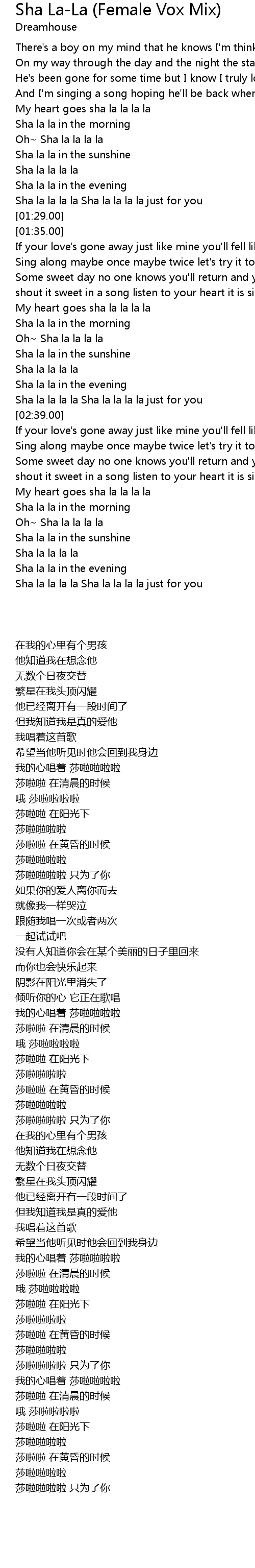Sha La-La (Female Vox Mix) Lyrics