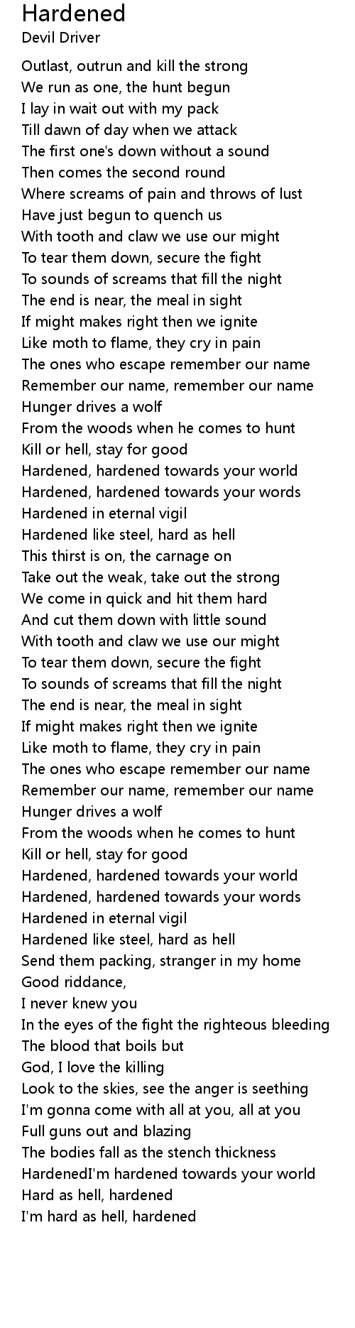 Hardened like steel, hard as hell |