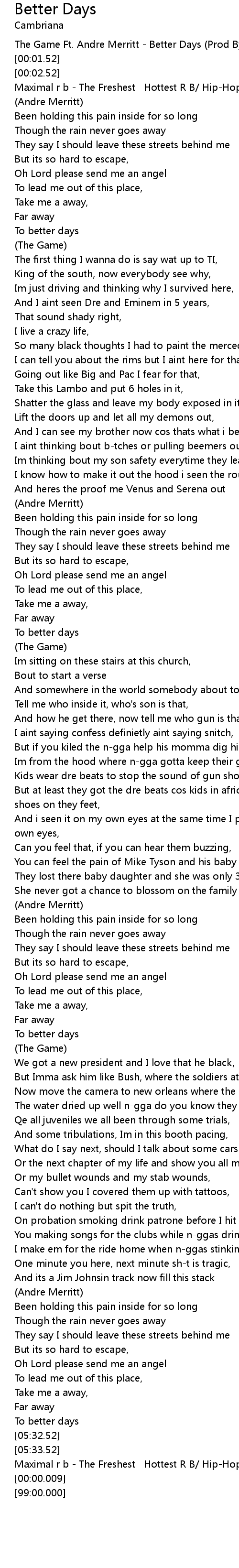 The Game Ft. Andre Merritt - Better Days (Prod By Jim Jonsin) |
