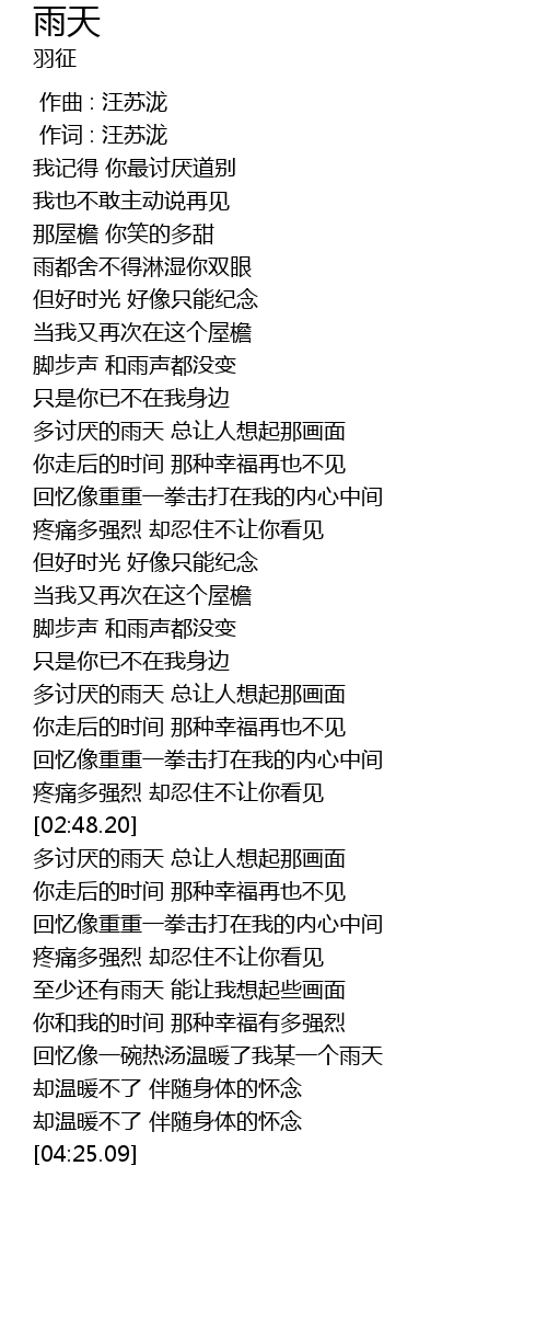 | [00:00.000] | 作曲 : 汪苏泷 |