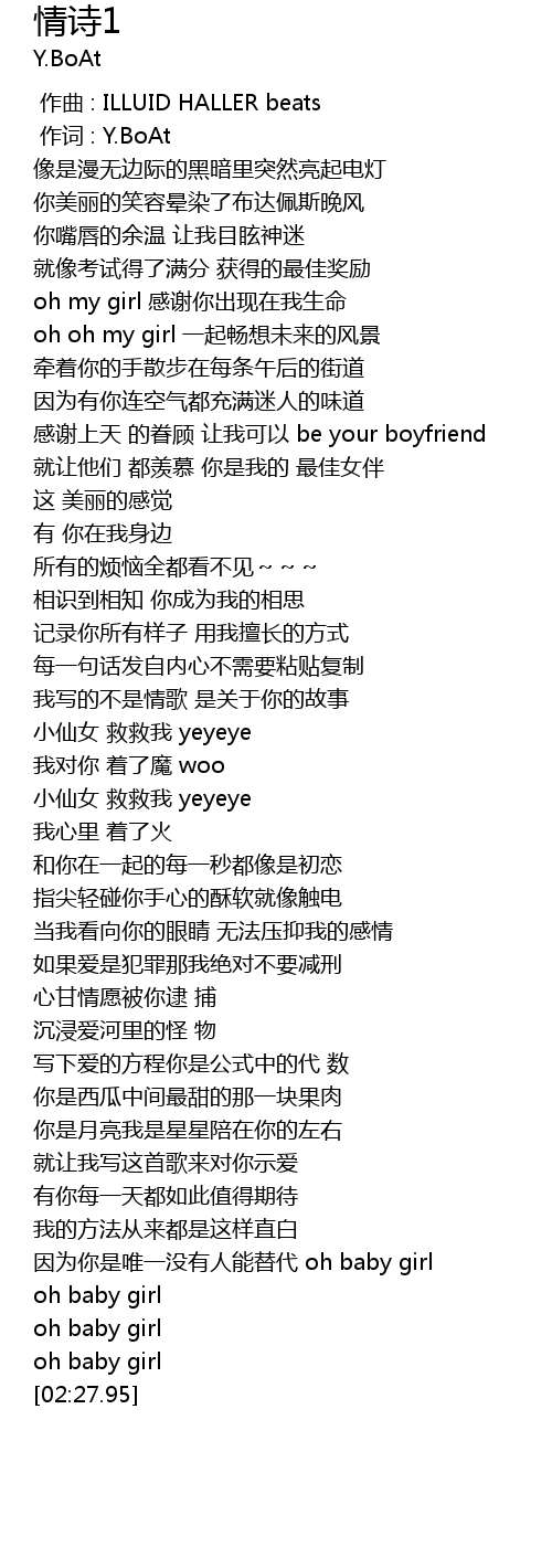 | [01:28.09] | 小仙女 救救我 yeyeye |