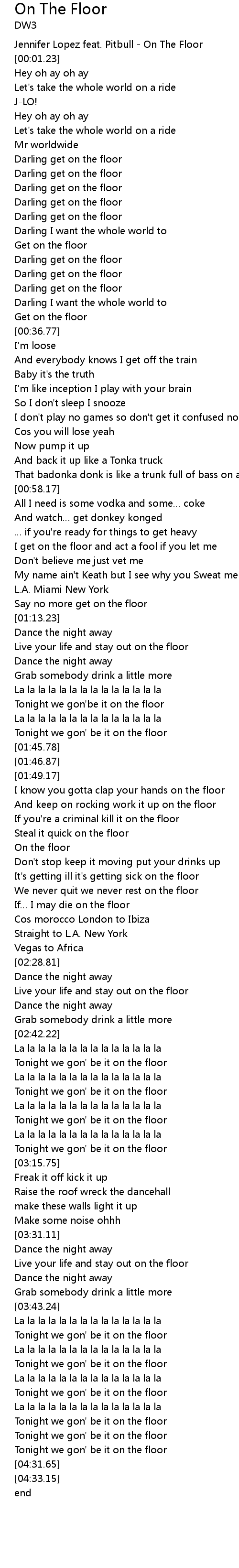 | [00:00.89] | Jennifer Lopez feat. Pitbull On The Floor |