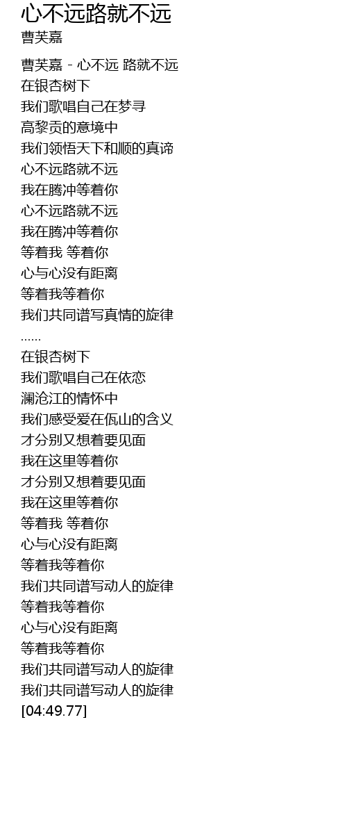 | [00:08.59] | 曹芙嘉 - 心不远 路就不远 |