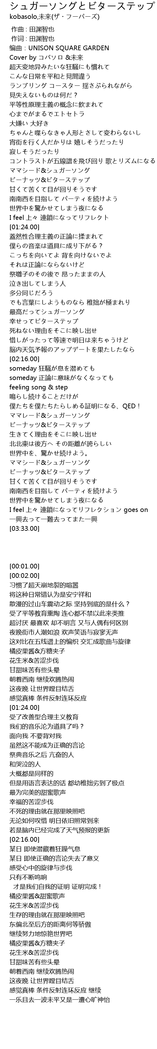 | [00:01.00] | biān qǔ: UNISON SQUARE GARDEN |