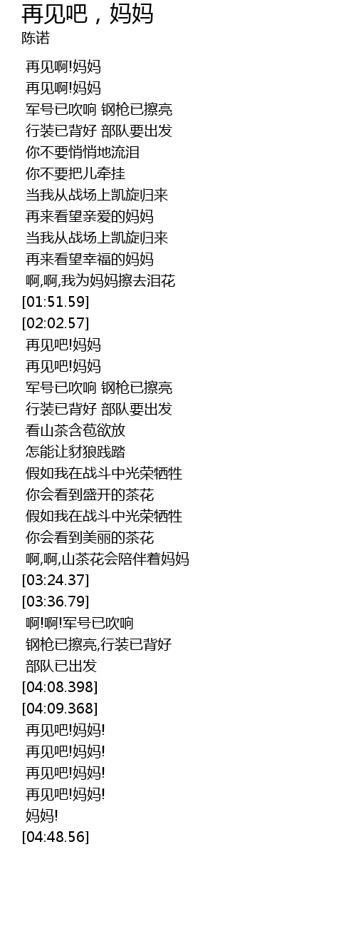 | [01:36.139] | 啊,啊,我为妈妈擦去泪花 |