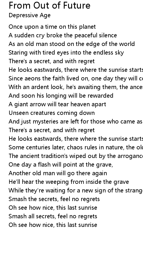 Some centuries later, chaos rules in nature, the old man died long ago |