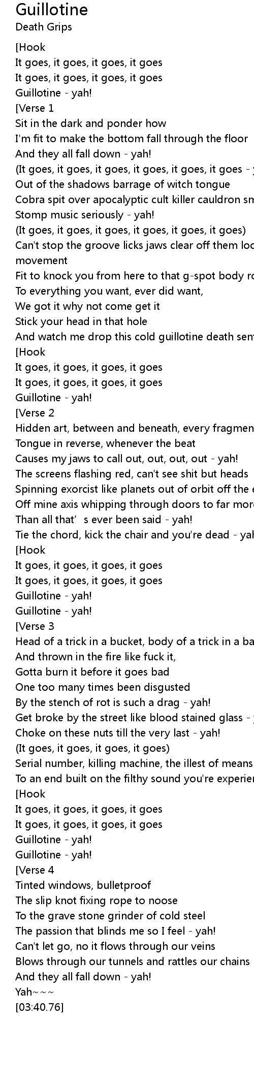 | [00:48.25] | And watch me drop this cold guillotine death sentence yah! Yah! |