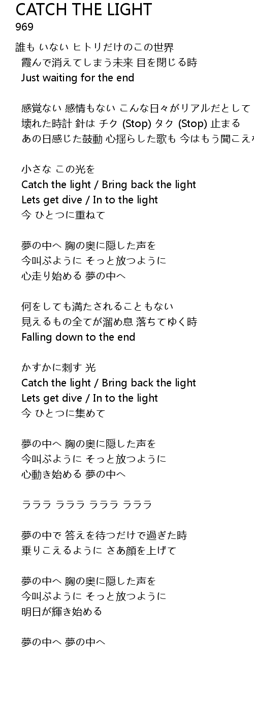 | あの日感じた鼓動 心揺らした歌も 今はもう聞こえない | |