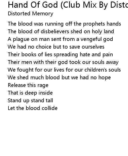 | Song | Hand Of God (Club Mix By Distorted Memory) |